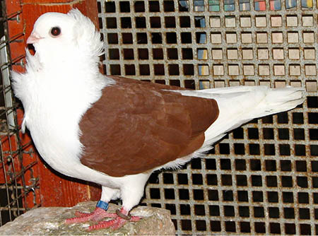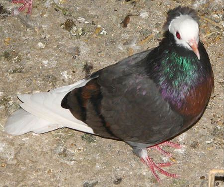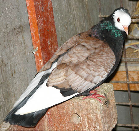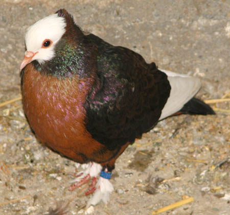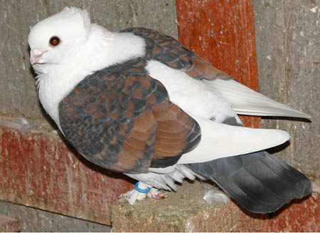 Pirók fehér szalagos x Szatinetta F1 hibrid: Véletlen esemény szülte ezt a hím galambot. |