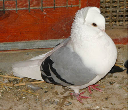 Baronett sirályka tenyészprogram: Egyik legkomplettebb baronett hibridem. Jó állás, harisnya, színes farok, mellfodor körfésű rozettákkal és közép rövid, a homlokkal tompa szöget bezáró csőr egy galambban összeszedve. A galamb „kiszínezése” frillstencilre még várat magára. Cséplő Á. |