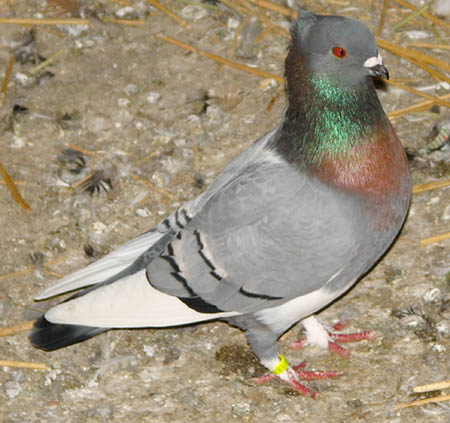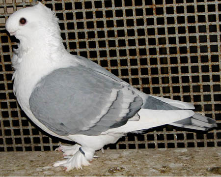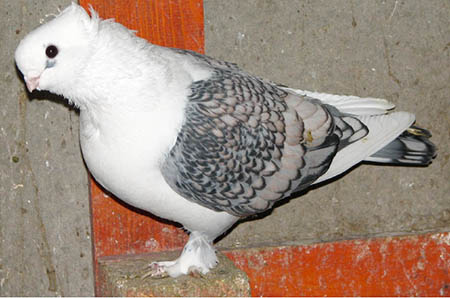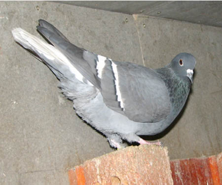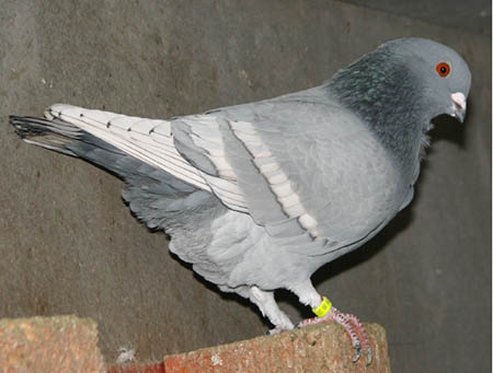 Osztrák fehér farkú galamb – Fajtiszta, más fajtáknál fel nem lelhető színezetű galamb. Az un acélkék szín a dirty és smoky gének hatására áll elő. A fehér farok és a széles fehér szalagok fejfolt nélkül kombinálva. Cséplő Á . |