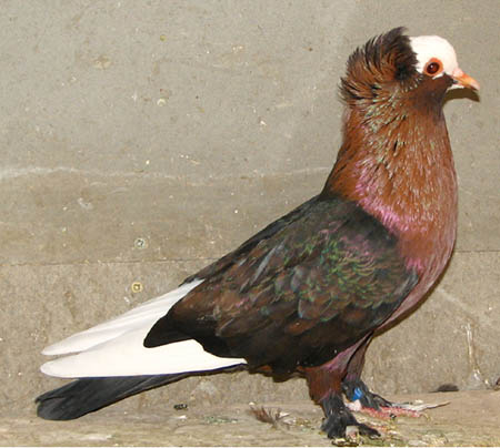 Baronett sirályka tenyészprogram: Egyik törekvésem, hogy a farok színessé tételével három színű (fehér, bronz, kék) színváltozatokat is előállítsak. A pajzsok bronz színe modenai fajtától származik. Szabályos anatóliai tarkaság, telt színek, harisnya és fésű itt kezd összeállni. Cséplő Á . |