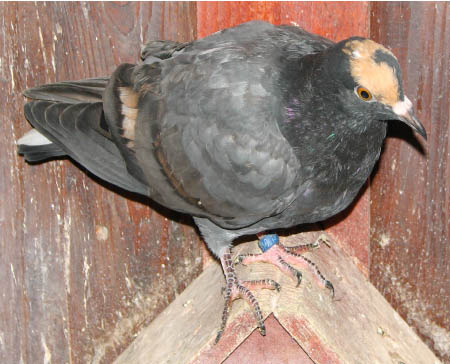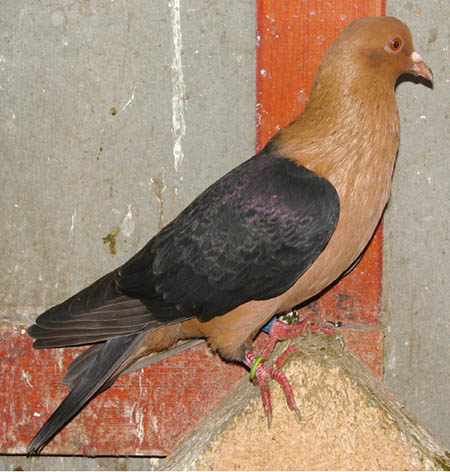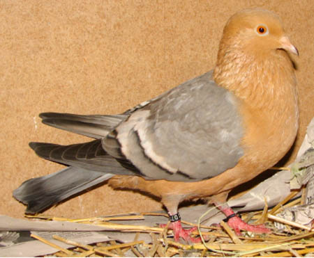 Pirók galamb- régi arany változat: A fekete szárnyú pirók galamb újra épített , „fapados” arany változata. A szárnyak tele kovácsoltak a a farok nem elég sötét színű. Cséplő Á. |