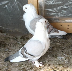 Bízom benne hogy a címben rejlő szójátékot azok is értik, akik nem beszélnek idegen nyelveket. A gold és silver angol szavak nagyon közönségesek a mindennapi életünkben, jelentésük, ki ne tudná , arany és ezüst. Bár fémek tekintetében az arany jóval értékesebb, mint az ezüst, galambszínezetek esetében nincs semmivel sem kisebb becsülete az „ezüst” galamboknak a sokkal ritkábban használt aranyokhoz képest. Van is ezüst színű galambunk bőven , győzze az ember számon tartani a sokféle, ámde egyöntetűen ezüstnek nevezett változatokat. Ezüst a vörös szalagos, ezüst a kék deres, ezüst a fekete milky, ezüst a dom vörös spread, ezüst a homo Indigó Spread, ezüst a kékszalagos faded, stb, stb, persze más -más fajták tenyésztőinek a nyelvében. Utoljára hagytam azt két közismert változatot,amit szintén nagyon gyakran ezüst éven illetnek. Ezek a kék, higított, szalagosok, és a barna szalagosok. Ezeket a kiállítási nomenklatúra szerint szokás kék fakónak és barna fakónak is nevezni, hozzáteszem hogy nem éppen logikusan. Ugyanis „ fakó” az leginkább a Féded gén magyar fordítása lenne, ezenkívül a barna esetében nincs is szó semmiféle színanyag hígulásról, hanem a hangsúlynak a barnaságon kellene lennie, hiszen itt egy megváltozott, de intenzívnek megmaradó alap színezettel van dolgunk. Bármilyen egyértelmű, és lényeges tartalmi különbség is van e két változat között,a gyakorlati valóság mégis csak az hogy ezek ránézésre igen csak hasonlítanak egymásra, nem véletlen, hogy mindkettőre rá lelhet húzni az „ezüst” elnevezést. Mivel különböző fórumokon többen szóvá tették, hogy a kék fakó galambokat nehéz megkülönböztetni a barnáktól, jelen írásomban megpróbálok rávilágítani néhány sajátosságra , melynek segítségével és némi szem gyakorlatozás után könnyebbé válhat ezek szétválasztása. Legkönnyebb dolgunk akkor van, ha a kérdéses galamb nálunk születik, és nem tarka, azaz nincsenek fehér tollai, az egész galamb tetőtől talpig színes. E szerencsés esetben, a barna intenzív színű fiókák normális mennyiségű és hosszú tollpihével bújnak ki a tojásból , míg a fekete alap(!)színű és egyúttal hígított fiókák csupaszok. Az egybefüggően színes tollazaton még érzékelhető az is hogy a barnák egyértelműben barnás árnyalatúak. A kék fakók színezete is mutat ugyan némi barnás árnyalatot, mégis ez utóbbiak szürkésebbek, különösen ha egymás mellet láthatjuk őket. Ha felnőtt galamb kerül a szemünk élé, akkor fürkésszük a szeme színét. A kék fakók szeme normális, azaz narancsos vörös színezetű, ezzel szemben a barnák szeme rózsás árnyalatú, un. hamis gyöngyszem, köszönhetően annak, hogy a sárga színanyag hiányzik belőle. Ez a módszer akkor tud megcsalni bennünket, ha a vizsgált nem barna galamb valódi gyöngyszemű. A gyöngyszemű, nem barna galambok szeme általában kidolgozott szinte fehér színű. Hozzájuk képest a hamis gyöngyszem vastagon vérerekkel keretezett, csak a pupilla mentén látszik egy keskeny fehér szegély. Amennyiben a barna változat is valódi gyöngyszemű, (hamis gyöngyszem helyett igaz gyöngyszem) akkor ez a módszer alkalmatlan a megkülönböztetésre. Ősz tájékán a vedlő tollak adhatnak támpontot. A barna alap pigment tulajdonsága ugyanis, hogy a fény hatására jelentős mértékben elbomlik, ezért a nyár végére a barna tollak látványosan kiégnek, kivilágosodnak, erős kontrasztot figyelhetünk meg a frissen előbújt és a még el nem hullatott tollak között. Ez a jelenség a kék fakóknál kevésbe szembeötlő. Ezek volnának , azok a bizonyos külső jegyek, melyek teljesen színes galambok esetén segítségünkre lehetnek, gyorsan hozzá téve hogy mindig fordulhatnak elő szituációk, amikor nem tudunk határozott döntést hozni. Ennek oka, hogy az aktuális galamb hordozója/viselője lehet további más sötétítő, vagy éppen világosító géneknek is, melyek kicsit barnásítják a szürkéseket , esetleg szürkésítik a barnásakat. Határozottan nehezedik a helyhez ha a galamb tarka. Minél nagyobb testfelület színtelen ugyanis, annál nehezebb tipikus színes felületet találni ,amin szemünkkel vizsgálódhatnánk (pl fehér fejű, fehérfarkú-csapos, szalagos szívesek, de a színes farkú is nehéz eset). Fokozottan igaz mindez akkor ha a kérdéses fajta nem csak, hogy erősen (szabályos= rajzos) tarka, de ráadásul , mindezek tetejébe még a sötét szárny- és/vagy farok mintázatokat „fehérítő gének”( pl. Toystencil ) tüntetik el a szemünk elől. Ezzel meg is érkeztem a címben szereplő keleti sirályka színváltozathoz. A kissé hosszúra nyúlt bevezetésben leírtak miatt, nem lehet csodálkozni azon az ős régi megszokáson, hogy minden szalagos szatinettát, legyen az barna szalagos, vagy kék higított szalagos,( tehát valamilyen nem kék színű) , egységesen szilverettának neveznek a tenyésztők. A nevezés mindkét lehetséges értelmében igaz ez. Tehát a nevük sem különbözik és a kiállítási katalógusokba való nevezéskor sem tesznek különbséget közöttük. Az alább következő néhány mondatban megpróbálom láthatóvá tenni a láthatatlant, bemutatni, hogy a különbség létezik, és tekintettel kell lennünk iránta. A probléma mint jeleztem az, hogy a szatinetták szalagjai a toystencil és frill stencill (Gibson rendszere szerint) gének hatása miatt egységesen fehér tükrösek, az eredeti színezetből csak egy milliméter vékonyka szegély marad látható, vajmi kevés lehetőséget hagyva a vizsgálódásra. Ugyanakkor, pont a szárnyakra ható Toysencil gén csomag az , amelyik látványos segítség lehetőségét rejtegeti a az alapszínezetek megkülönböztethetőségére! Ugyanis, a fehér sz